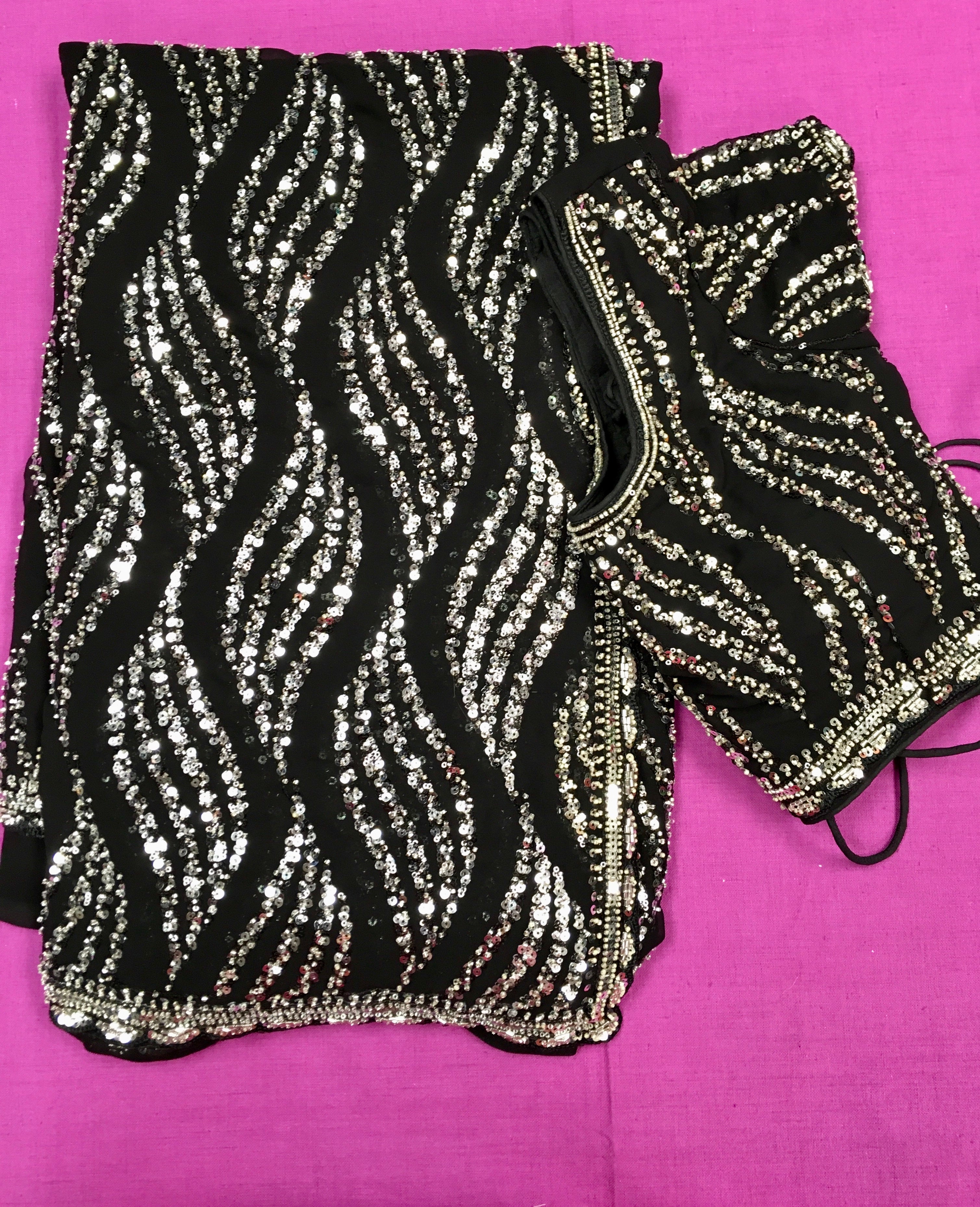 AFL3074 Party Wear saree with bead and sequin work in Black.Comes with stitched blouse size 38 ,can be altered to 42. Fall peco done.