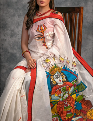 KKT133 PURE MATKA SILK JAMDANI SAREE IN BEIGE WITH ORANGE THREAD WORKNo reviews$155.00