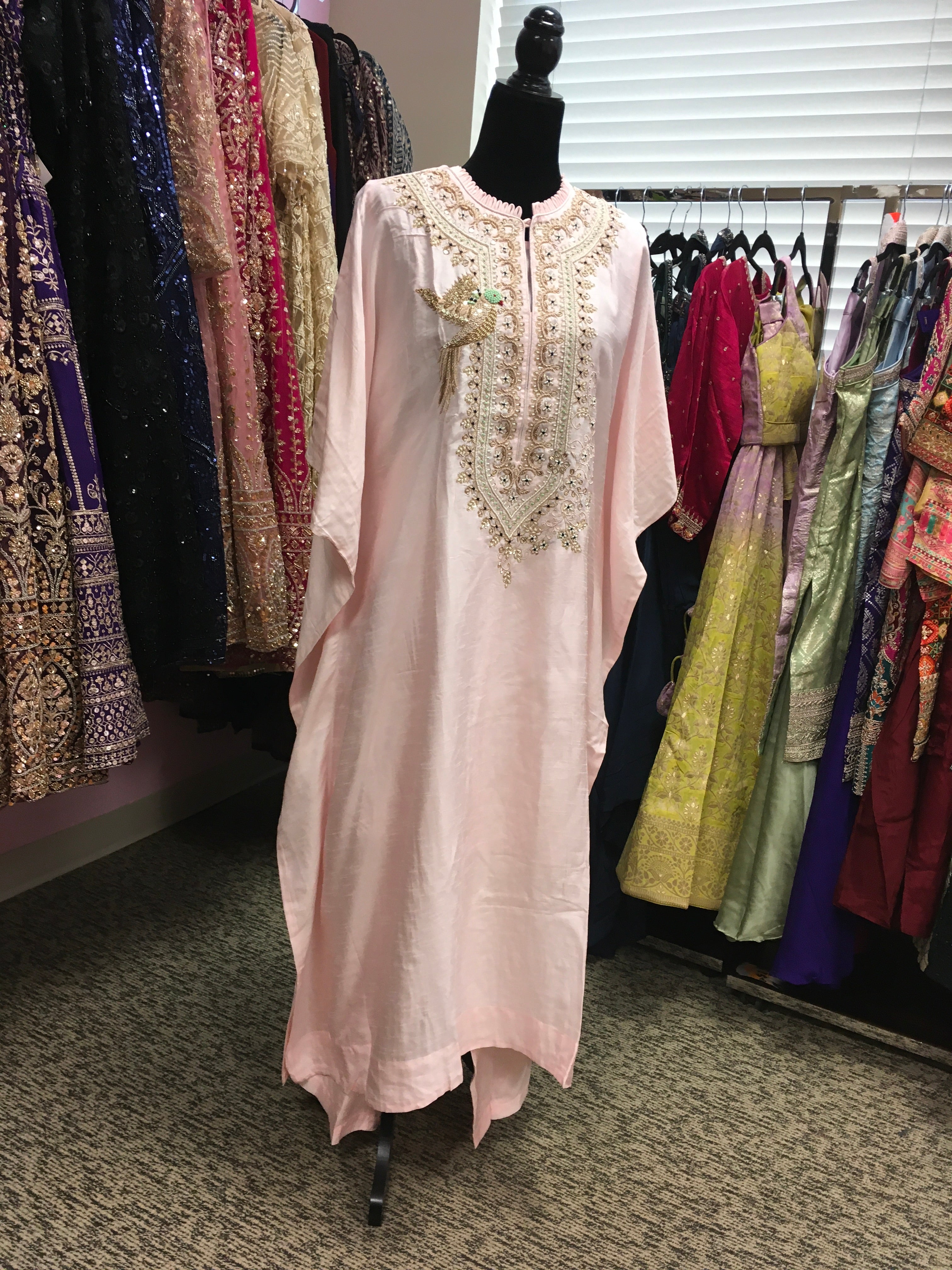 KKD008 - Pink and blue kaftan with beautiful work and bird design and pants